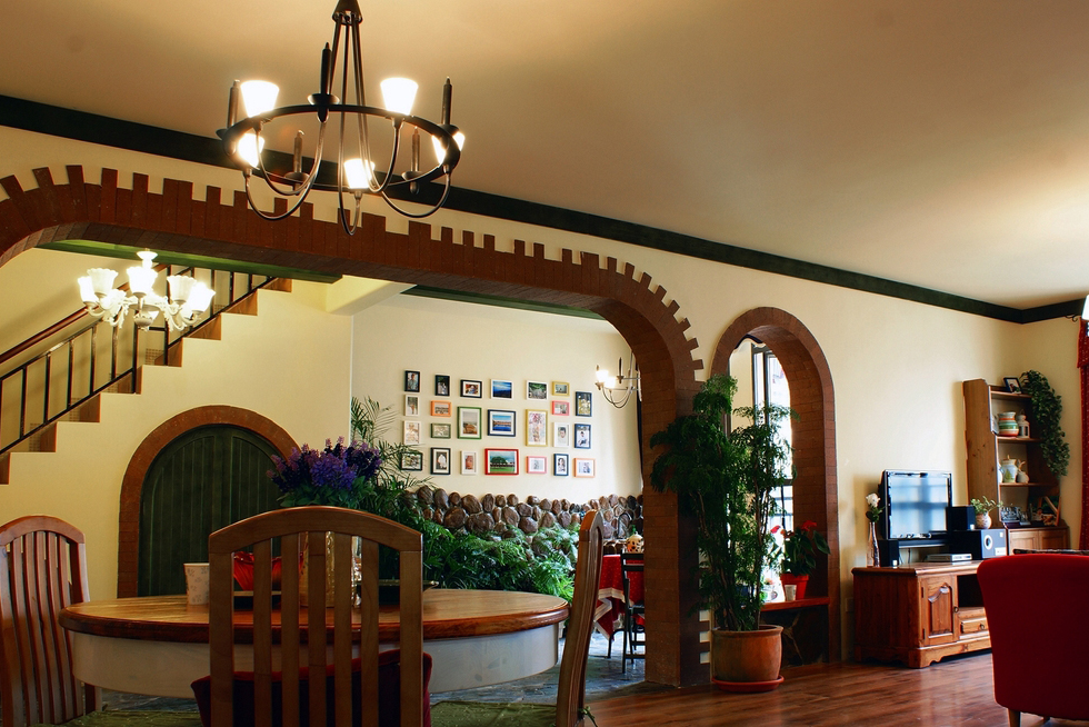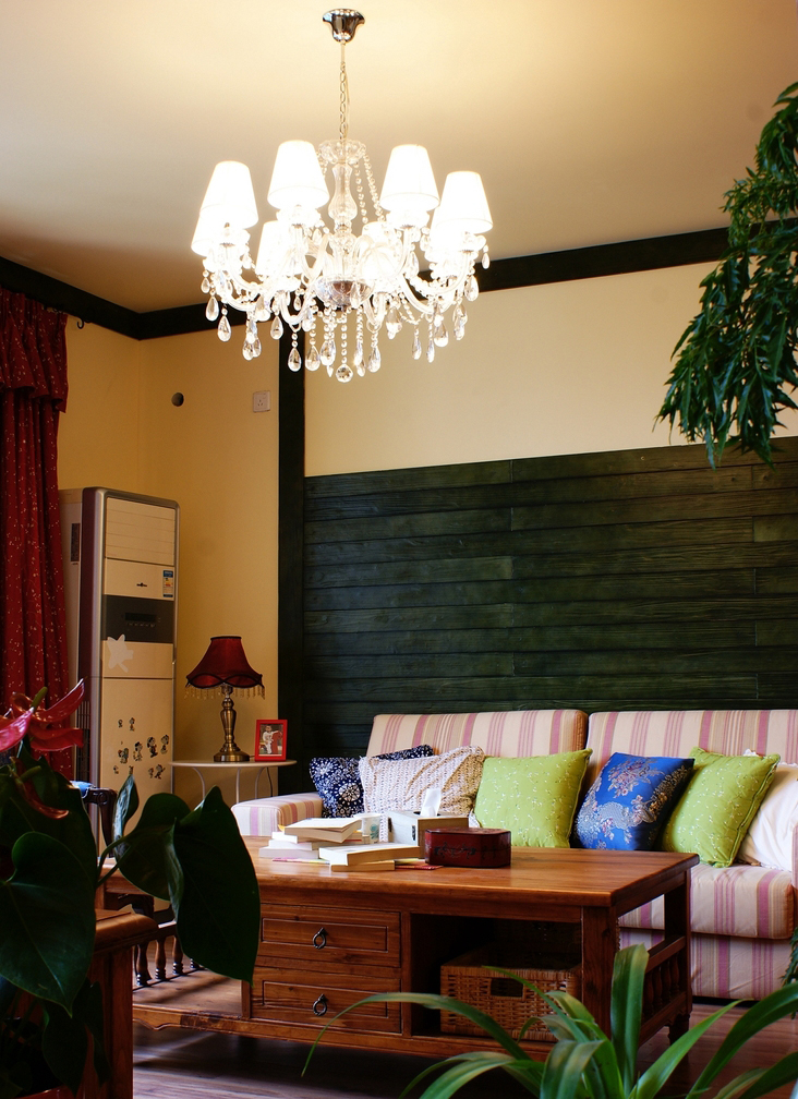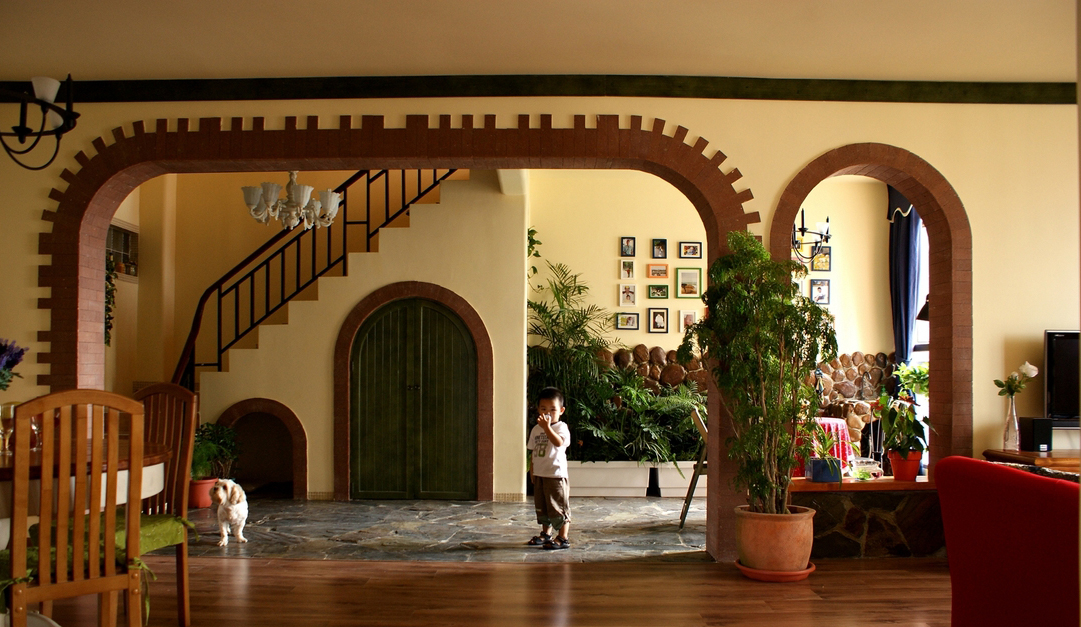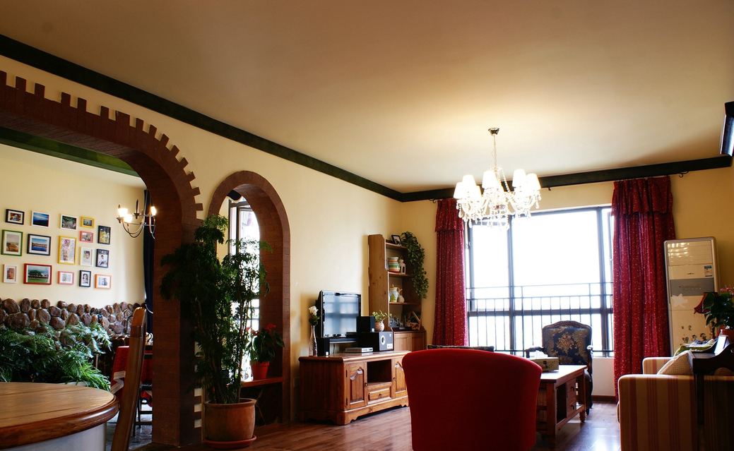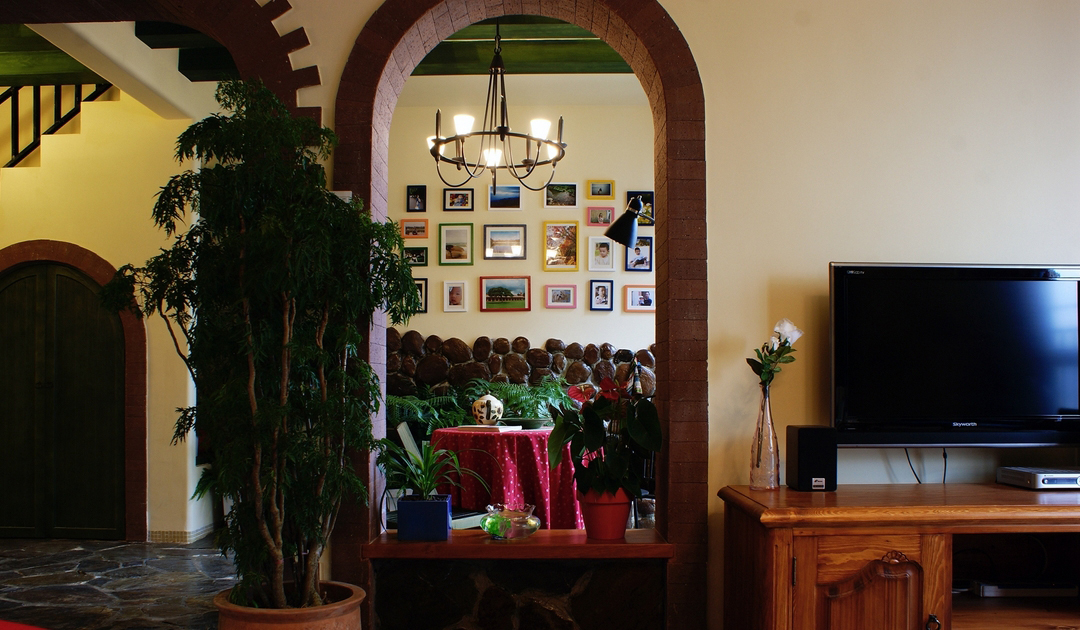 “北緯23.5度、南緯23.5度之間,分布著綠色宮殿般的熱帶雨林。從散布巖石小山的低地平原,到溪流縱橫的高原峽谷,參天的大樹、纏繞的藤蘿、繁茂的花草...多樣的地貌和植物,交織出形態(tài)萬千的雨林景觀...” “熱帶雨林季風(fēng)氣候下,磚紅壤以顏色類似燒制的紅磚而得名。”整個設(shè)計思路,由熱帶雨林的這兩個特征全面展開...... 業(yè)主愛蜜蓮熱愛大自然,花草,書籍,電影,音樂...“軟裝飾設(shè)計環(huán)節(jié)”中的每樣配飾都極為重視和熱心(這是形成一個完整設(shè)計作品的關(guān)鍵環(huán)節(jié))。步入愛蜜蓮的家,像進入一片熱帶雨林,大朵大朵花兒凝成了“熱情”的窗簾、沙發(fā)和臺布,精心挑選的植物和墨綠的原木裝飾,流動著綠意盎然的自然主義休閑精神......